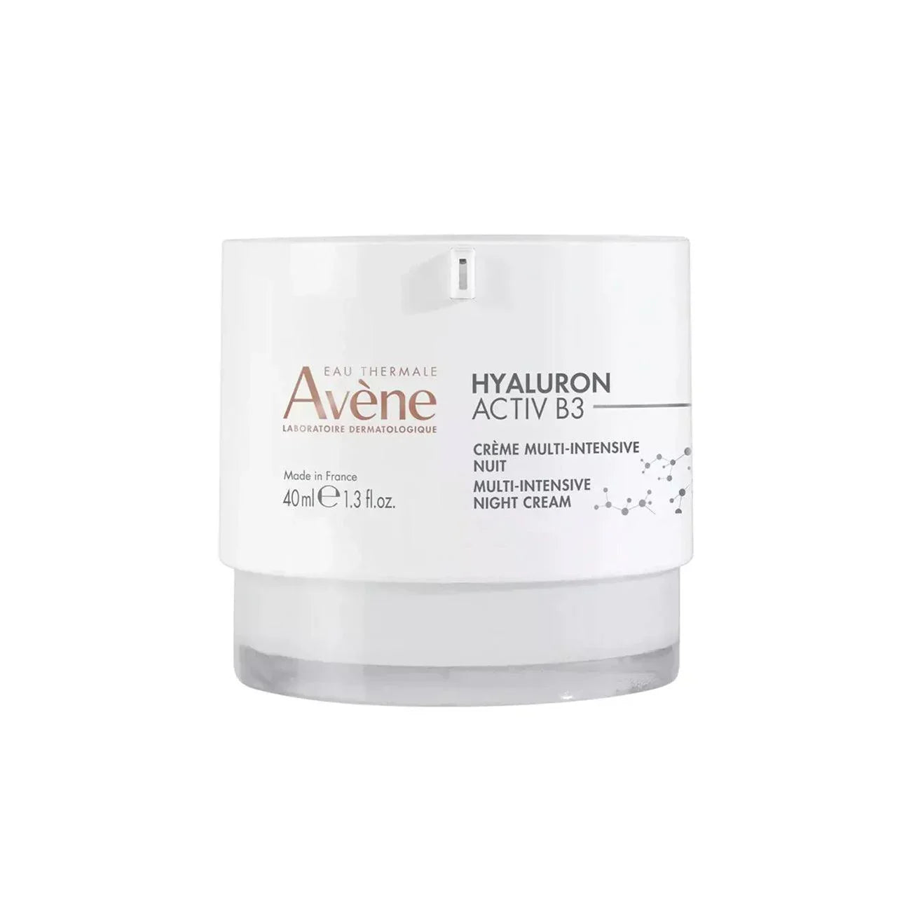 Wake up to smoother, firmer, and revitalized skin with the Avène Hyaluron Activ B3 Multi-Intensive Night Cream. This rich anti-aging night cream is formulated with Hyaluronic Acid and Niacinamide (Vitamin B3) to deeply hydrate, plump, and repair skin overnight. Its regenerating formula helps reduce the appearance of wrinkles, improve elasticity, and restore radiance while respecting sensitive skin.
